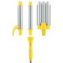 Waver: Natural, Beachy WavesSection hair into clean, 3-inch (7.5 cm) sections. Hold the tool horizontally, press to open the clamp and capture the top of the hair section between the barrels and clamp. Release clamp and hold in place for several seconds until desired definition is achieved. Open the clamp and move down the section. Repeat until the whole section is waved. For a deeper, more defined wave, keep the section clamped a few seconds longer. |