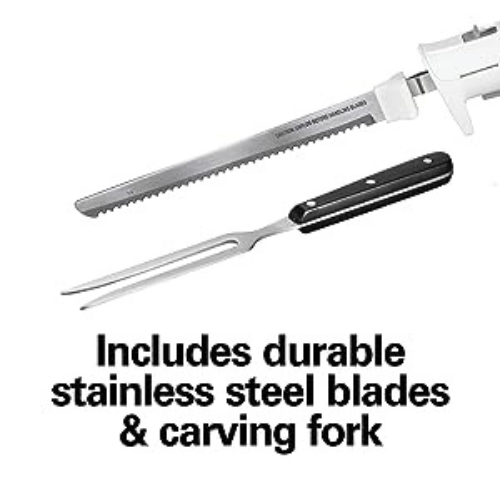 Hamilton Beach Electric Knife Set for Carving Meats, Poultry, Bread, Crafting Foam & More, Reciprocating Serrated Stainless Steel Blades, Ergonomic Design Storage Case + Fork Included, 5 Foot Cord