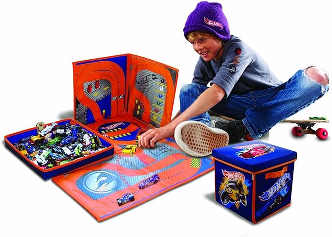 • PLAY AND STORE your Hot Wheels cars and accessories with this super cool playmat that doubles as a storage bin and holds up to 300 Hot Wheels cars or plenty accessories.
