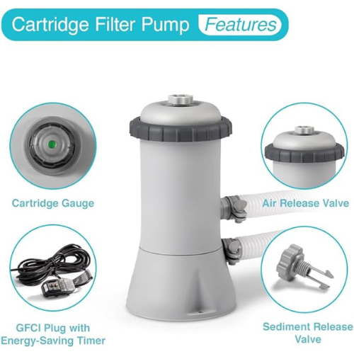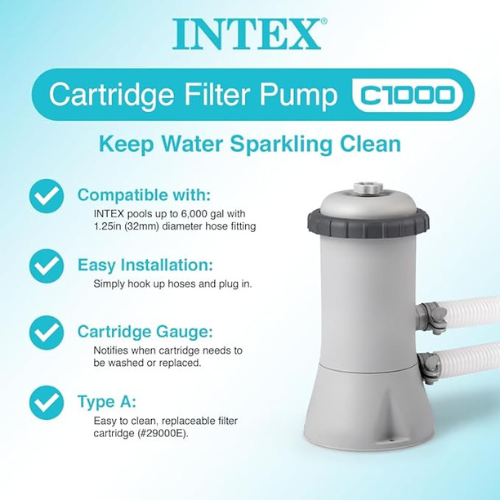 INTEX C1000 Krystal Clear Cartridge Filter Pump for Above Ground Pools: 1000 GPH Pump Flow Rate – Improved Circulation and Filtration – Easy Installation – Improved Water Clarity – Easy-to-Clean