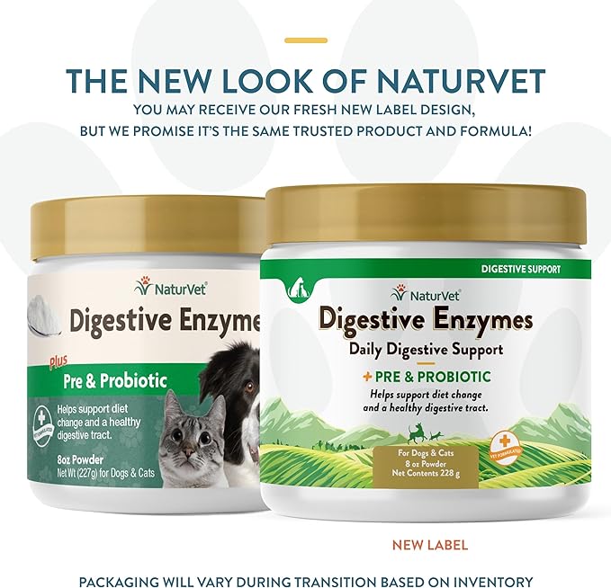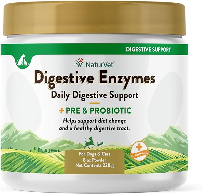 NaturVet – Digestive Enzymes for Dogs – Plus Probiotics & Prebiotics | Helps Support Diet Change & A Healthy Digestive Tract | for Dogs & Cats | 8 oz Powder