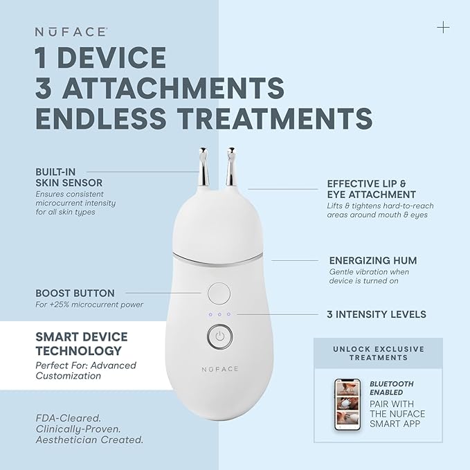 NuFACE Trinity+ Effective Lip & Eye Attachment for Microcurrent Facial Device – FDA Cleared at Home Eye Lift & Smile Lines Treatment to Tighten & Tone Hard-to-Reach Areas Around Mouth and Eyes